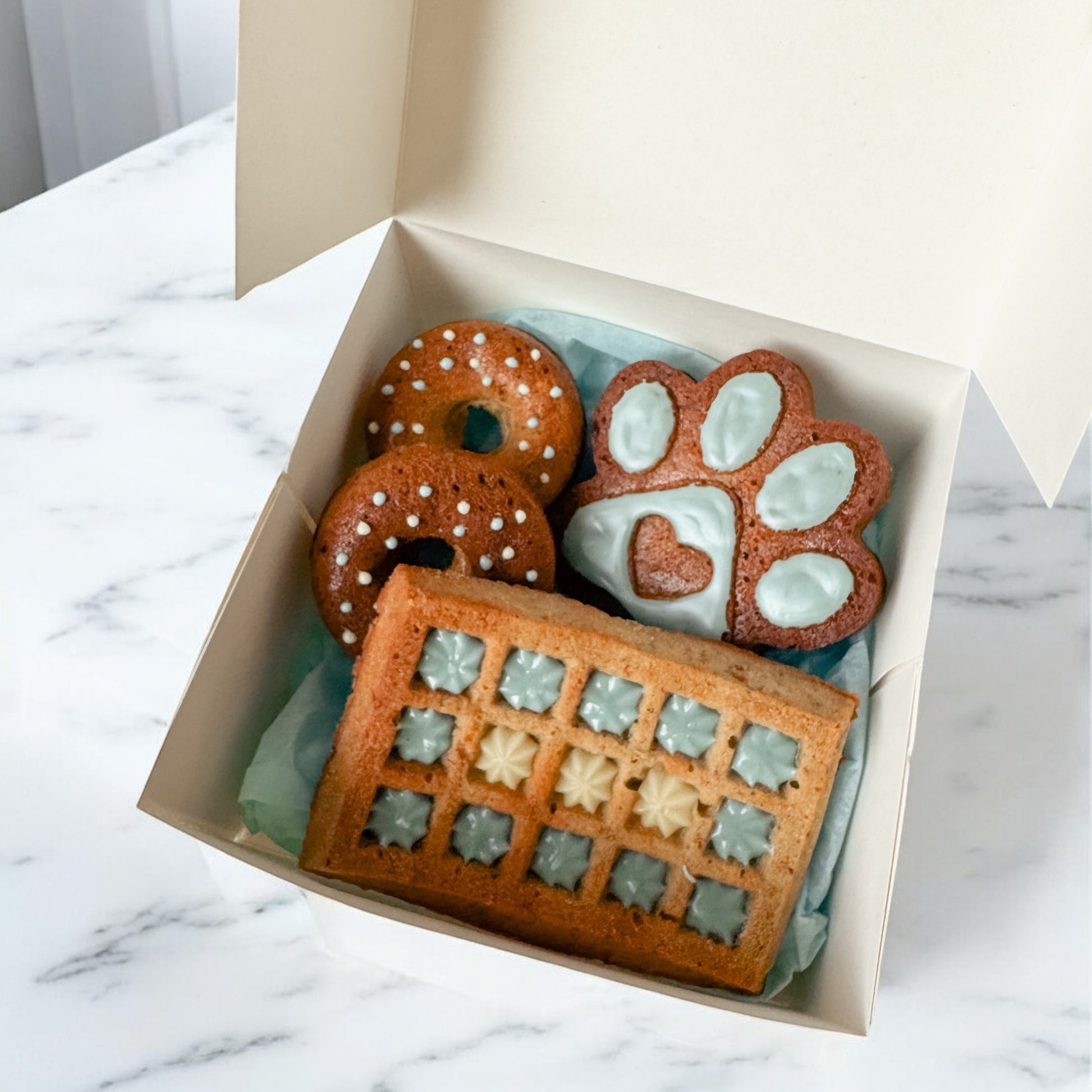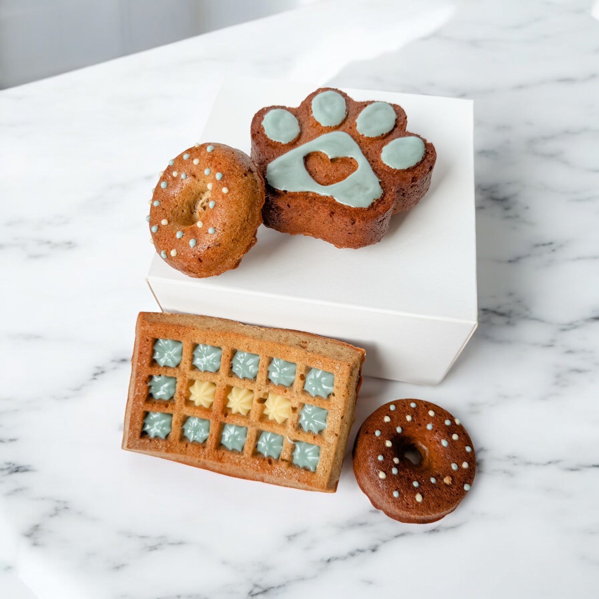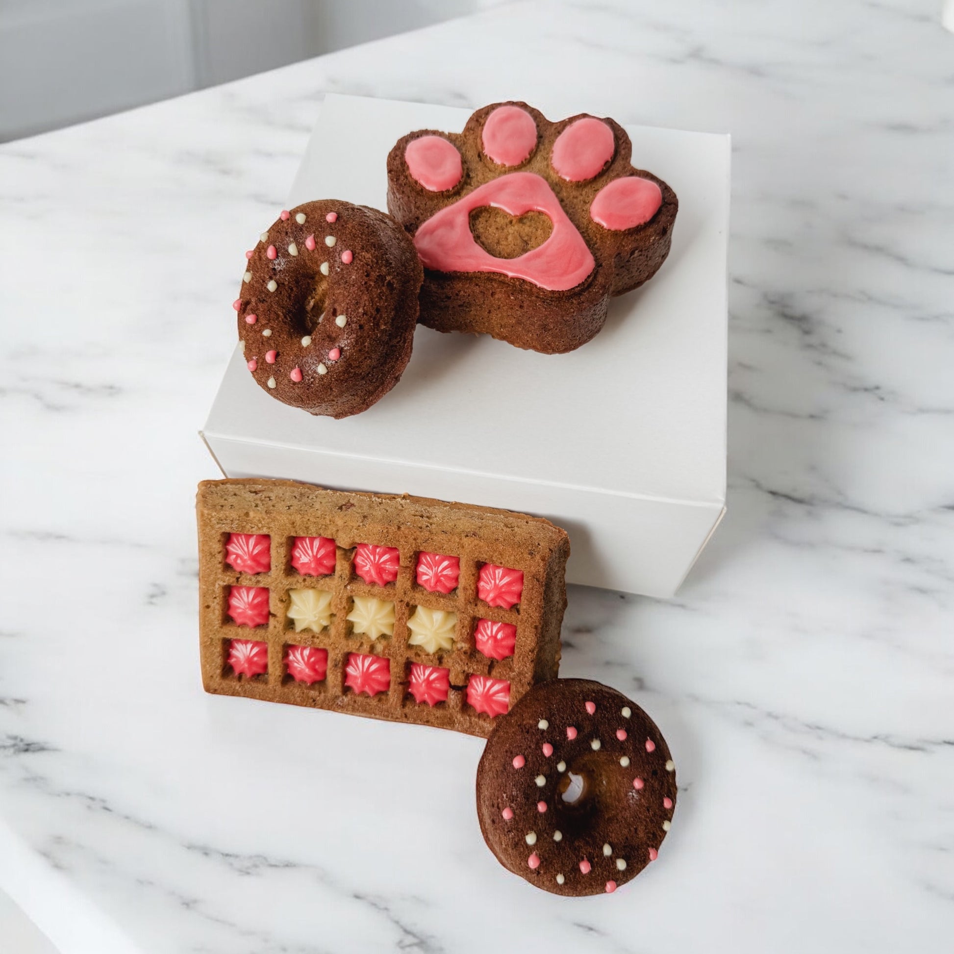 Poids net : environ 270g (2 donuts, 1 grande patte de chien & 1 gaufre)